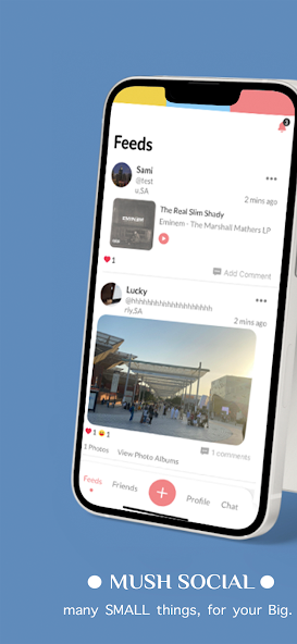 ¡Bienvenido a The Mush Social , una aplicación de redes sociales única y segura donde puede buscar amigos y familiares y compartir fotos, videos u otro contenido con ellos! Cree su comunidad personal, ¡siga sus intereses! Creamos esta aplicación para permitirle tener un lugar que reúna sus mejores momentos con sus amigos. ¡Pase tiempo de calidad con sus amigos en línea! Características de Mush Social - Social Social Networking: